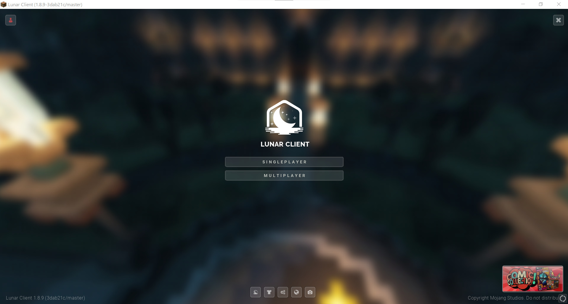 インストールが終わると自動的に上のようなLunar Clientのランチャーが起動されます。Lunar Clientはランチャー型のクライアントなので公式のMinecraft ランチャーから起動することはできません。